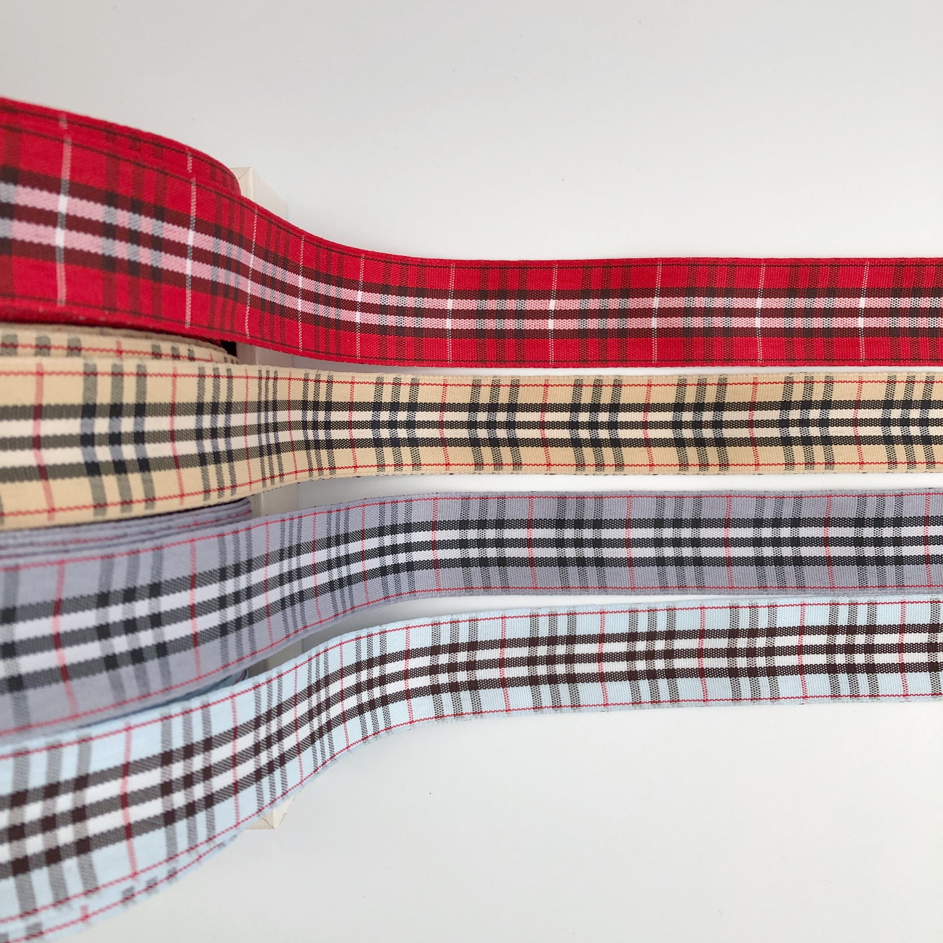 25mm幅のタータンチェック柄リボン1mのお値段です。