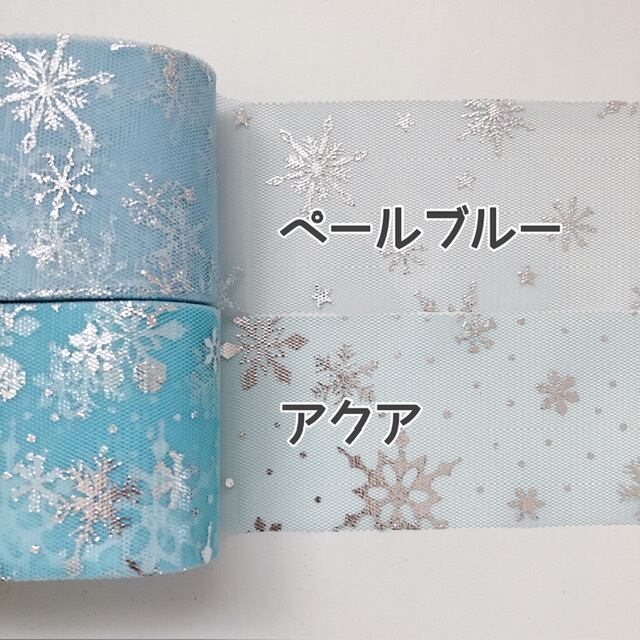 全5色[2m]60mm幅チュールリボン スノーフレーク柄(シルバー)